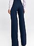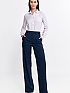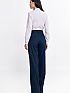 Dámske nohavice na mieru sú vyrobené z elegantnej tkaniny s jemne kontrastnými detailmi tenisových prúžkov, ktoré vytvárajú elegantný vzhľad. Vysoký strih zvýrazňuje pás, zatiaľ čo nohavice v strihu bootcut, jemne rozšírené v spodnej časti, poskytujú štýl